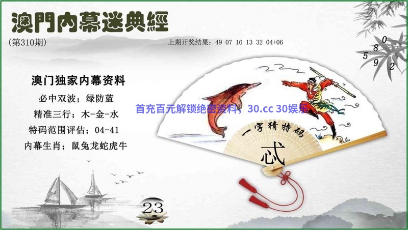 | 307期:专业杀半波【红波双】开:狗20准 |