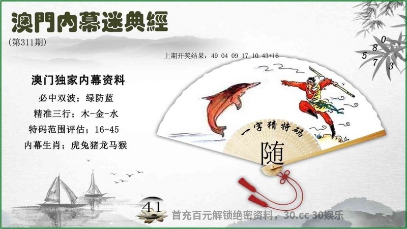 | 302期:专业杀半波【红波单】开:猴22准 |